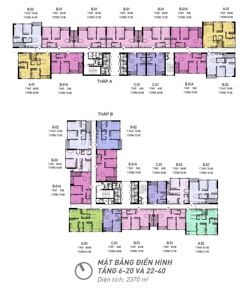 - Dự án bao gồm 2 tòa tháp căn hộ cao 40 tầng nổi và 2 tầng hầm.